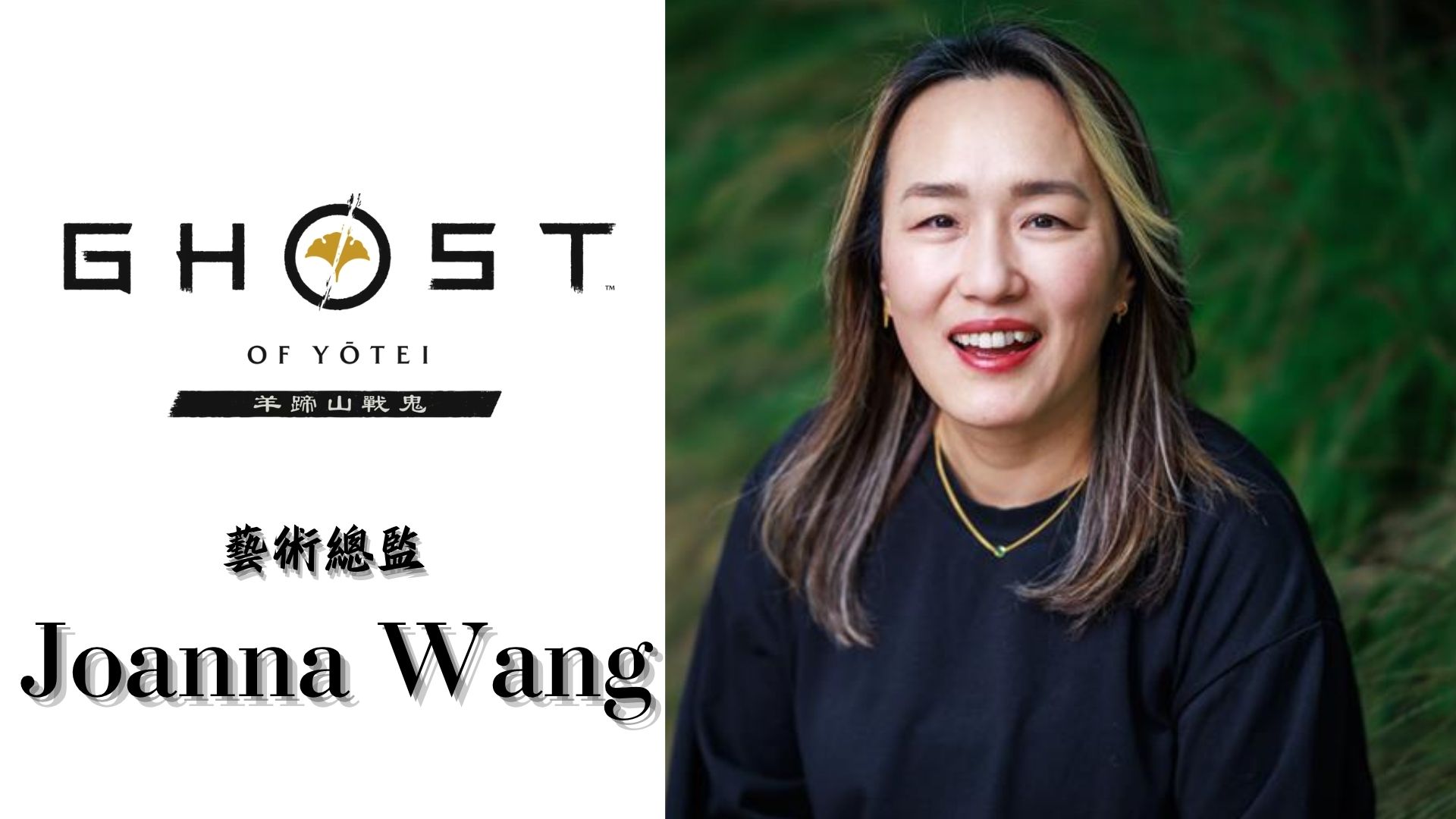 Joanna Wang 已在 Sucker Punch 工作室任職超過 20 年。她最初以材質藝術師的身份入職,其後逐步成長,現擔任製作藝術總監(Production Art Director)一職。任職期間,Joanna Wang曾傾心參與多個經典遊戲項目的開發,包括《Sly Cooper 2》、《Sly Cooper 3》、整個《惡名昭彰(inFAMOUS)》系列、《對馬戰鬼》,以及工作室最新推出的遊戲《羊蹄山戰鬼》。