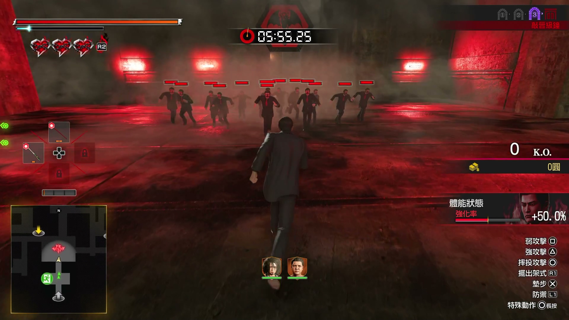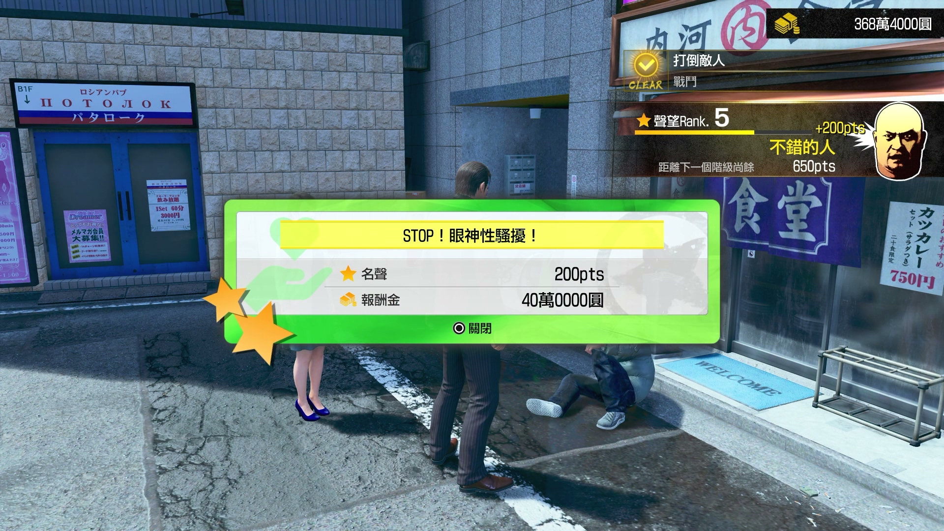 還有值得留意的一點,就是在遊戲中峯義孝需要升級的話,是需要利用到金錢,而在遊戲中賺取金錢的手段,除了打倒路邊的敵人外,最快的就是挑戰「地獄生存戰」以及完成「神田領袖魅力計畫」,而在操作方面與以往一樣,玩家是有兩個不同選擇,第一個就是乖乖儲錢提升攻擊力、體力或招式,另一種則是比較偏門,就是採用「道具流」的打法,只要將一整家LAWSON放在身上,只要不是去挑戰競技場的話,是可以很快去完成整個外傳,這個方式適合一些只想觀看劇情的玩家使用。