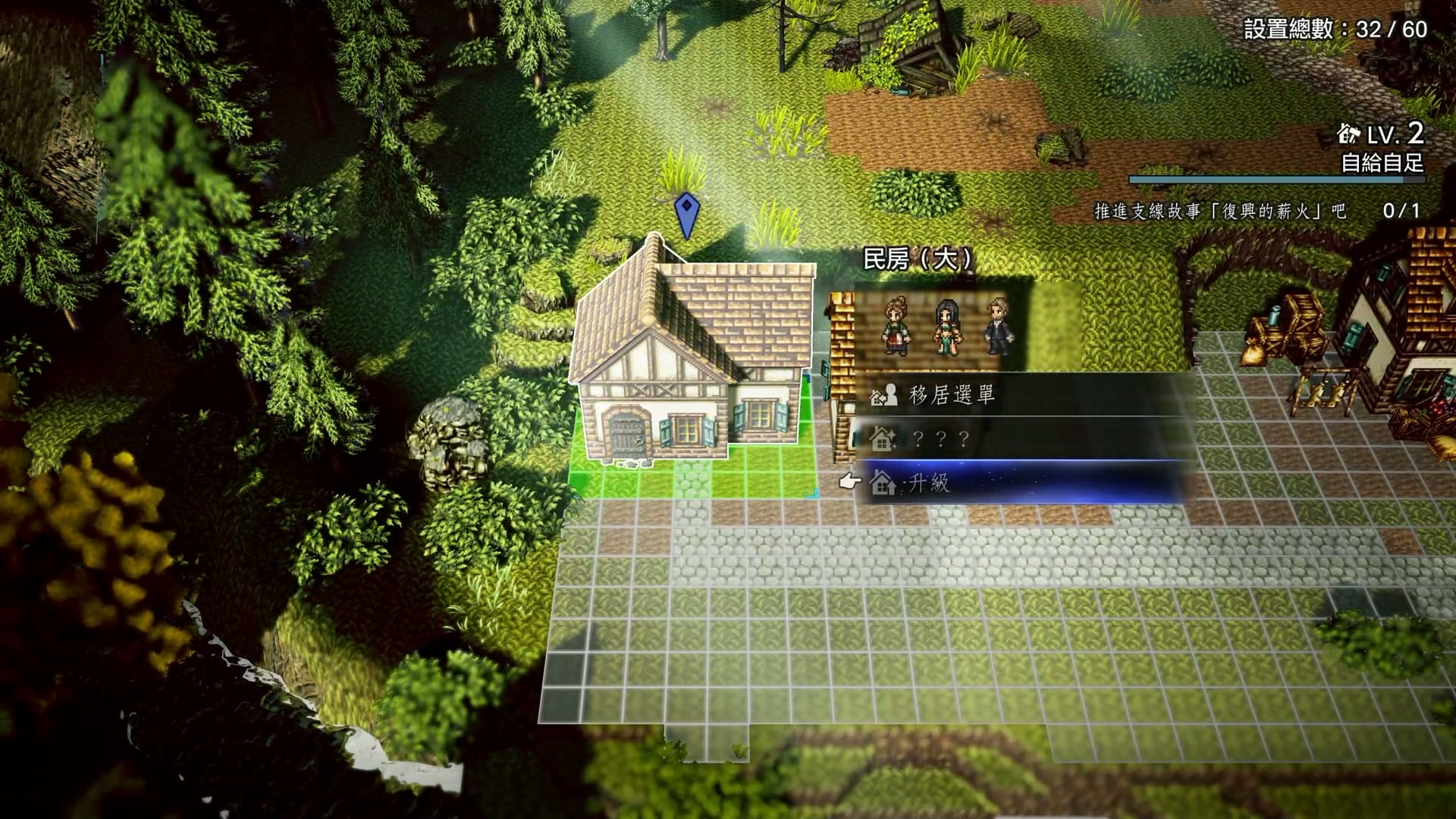 目前筆者尚未通關全劇情,但已感受到幾處明顯的體驗瑕疵:其一為視角限制,遊戲不支援方向轉換,導致佈局建築時經常出現視線受阻的情況,無法直觀把控整體規劃,給佈局帶來諸多不便;其二是固定的建築物不能移動,令建築時有點難以將相同的建築放在一些,還有最大的問題是居民不會外出,只會留在室內,令收集了很多居民,原本以為小鎮可以很活潑的玩家有點失望,而且每個建築都有數量上的限制,特殊建築當然是固定數量,但連一般的房屋也有限制的話,那令玩家收集村民的意慾會大減,令到這個建築模式有點可有可無之感。