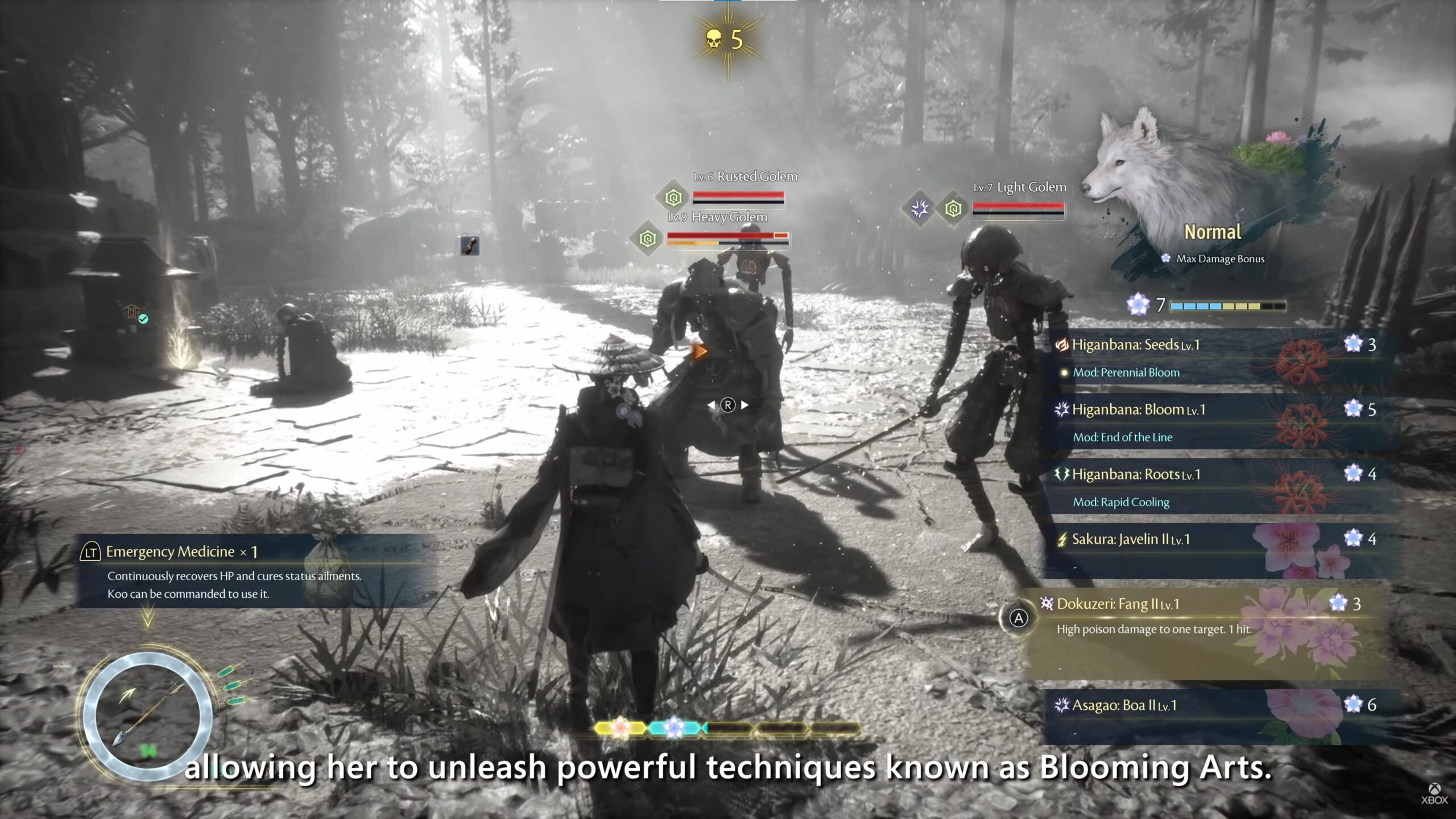 在遊戲畫面中亦不難發現,場景大部份都是以綠色的生態為主,同時亦能看到主角Emma能吸收這些生物的能量,同時亦可發動不同的能力,如利用機藤作空中移動,或是同伴Koo在於戰鬥中發動不同的技能等等,而且主角跟Koo亦會獨立設有自己的技能樹,讓玩家可隨自己的攻擊風格來設定相關的技能。