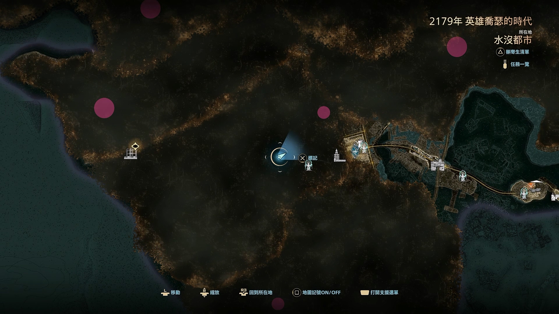 由於本作是以開放式世界地圖為主,所以玩家在遊戲開始時已經可以在地圖上走動,但要留意的是一開始地圖是被迷霧所隱藏,玩家需要在地圖上找尋不同的紅點,將隱藏地圖的怪物打倒,才能開放正式的地圖,而且地圖上亦設有很多不同的據點或野外頭目,當中亦會有不同的小型頭目戰,讓玩家可隨心所欲的進行不同挑戰。