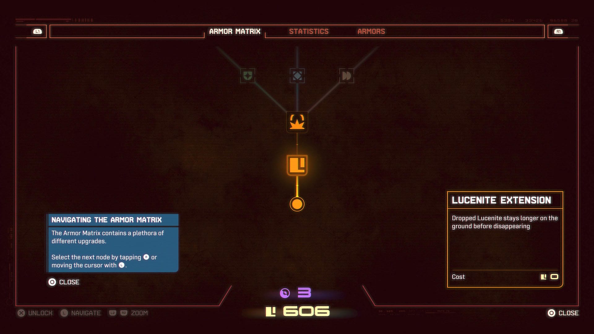 為了迎合玩家的操作風格,遊戲中的科技樹升級上亦特設了三個方向,而想開啟這些科技,除了要使用「光礦」外,某些特定的技能亦需要使用「夢晶」,而三個科技樹分別是護甲、能量及資源三種,而護甲主要是增加角色的防禦力,能量則是加長護盾的時展,至於資源則是令玩家收集「光礦」或是武器的質量,雖然玩家是可以三則一起升級,但最好還是因應自身的需求來作出提升。