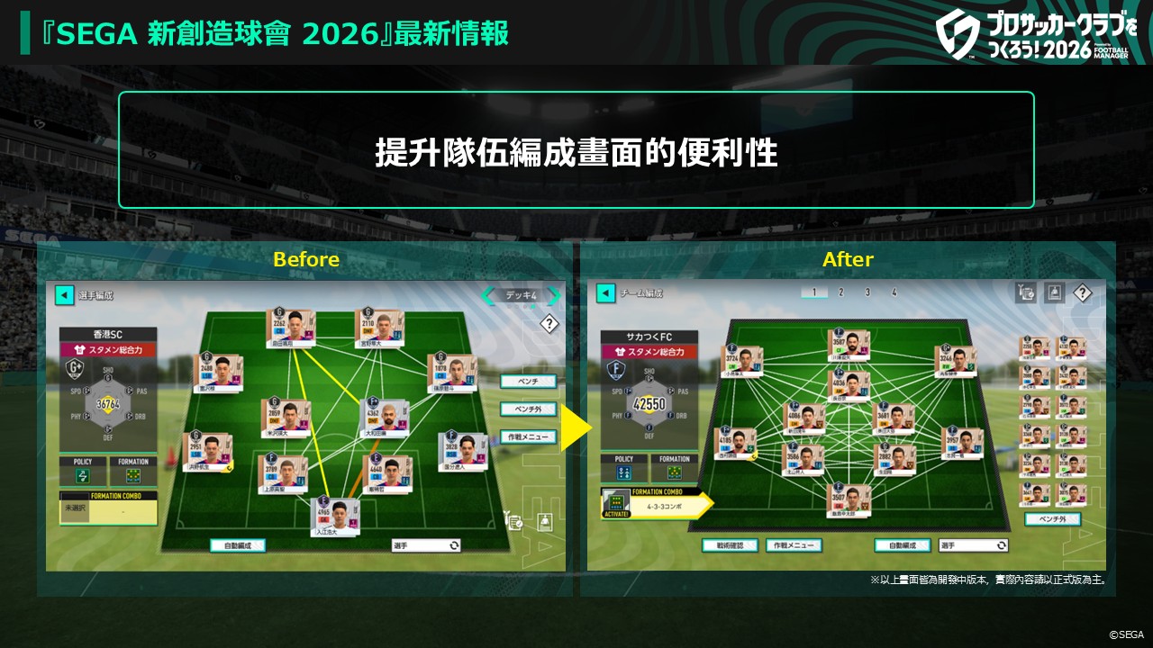 SEGA於昨日(27)官方直播中公開《SEGA 新創造球會 2026》將於 2026年1月22日正式上線,並同步開放App Store / Google Play雙平台事前預約!配合雙平台預約開啟,官方特別準備了兩項預約活動,邀請監督們一同來打造你的『創造球會』!