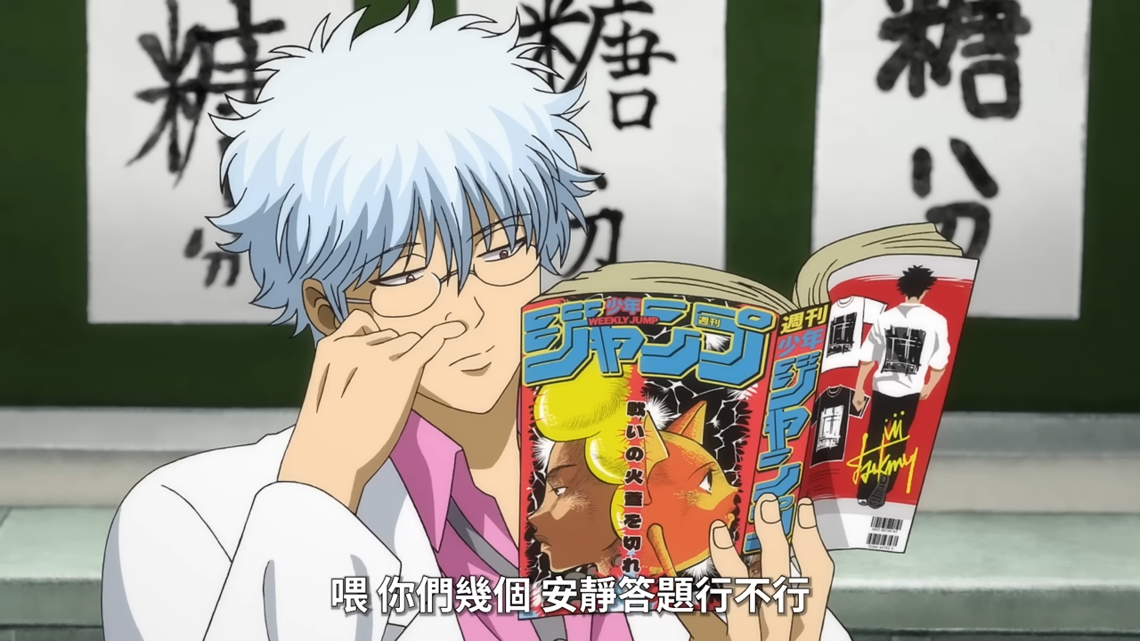 即使《銀八老師》還是維持著那個胡鬧的氣氛,把製作幕後和原作者都拖出來玩,讓人噴笑的內容滿載,而且細節都有好好做出來,像是每集黑板對應劇情的變化,人物服裝的改變,角色們手上拿的書和看的節目等,全部都是默默地存在又滿滿令人在意的梗,但《銀八老師》對比本篇系列還是有比較收歛一點……應該有吧。可惡,誰想看猩猩的屁股。